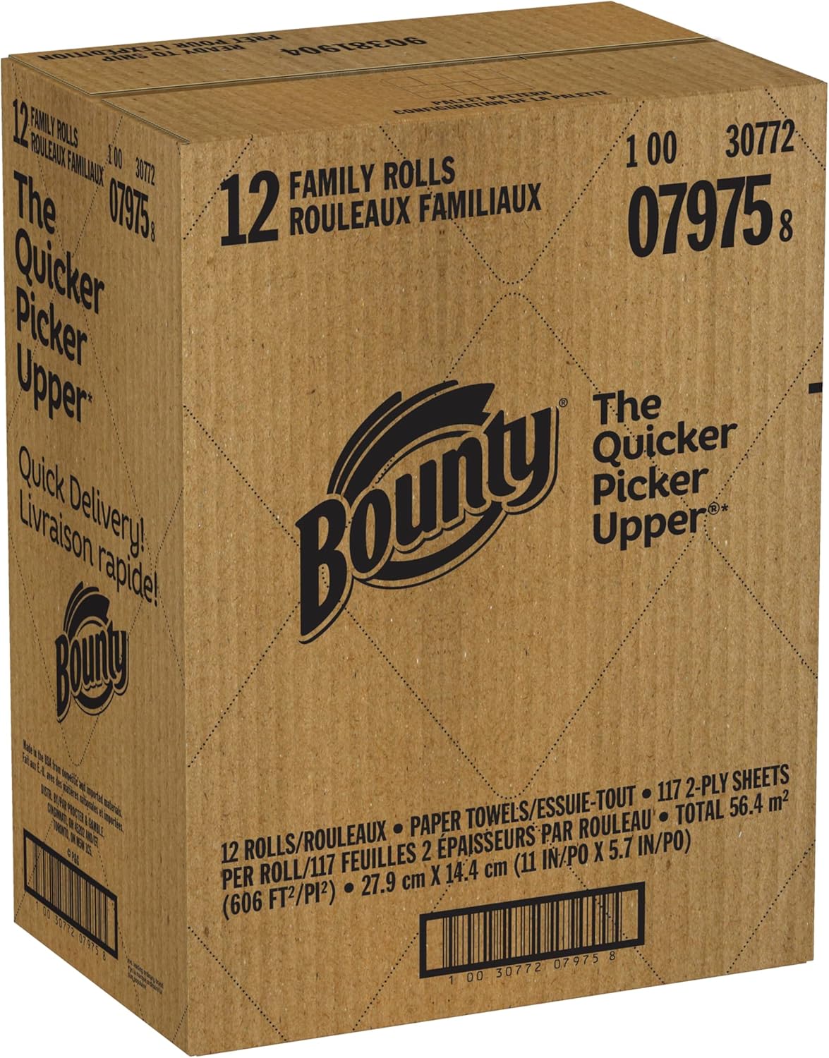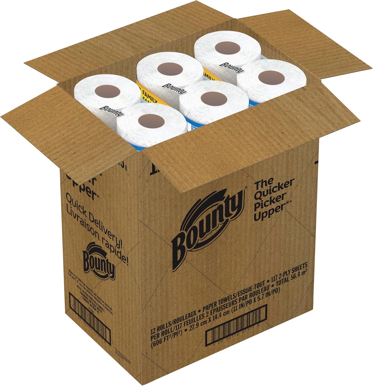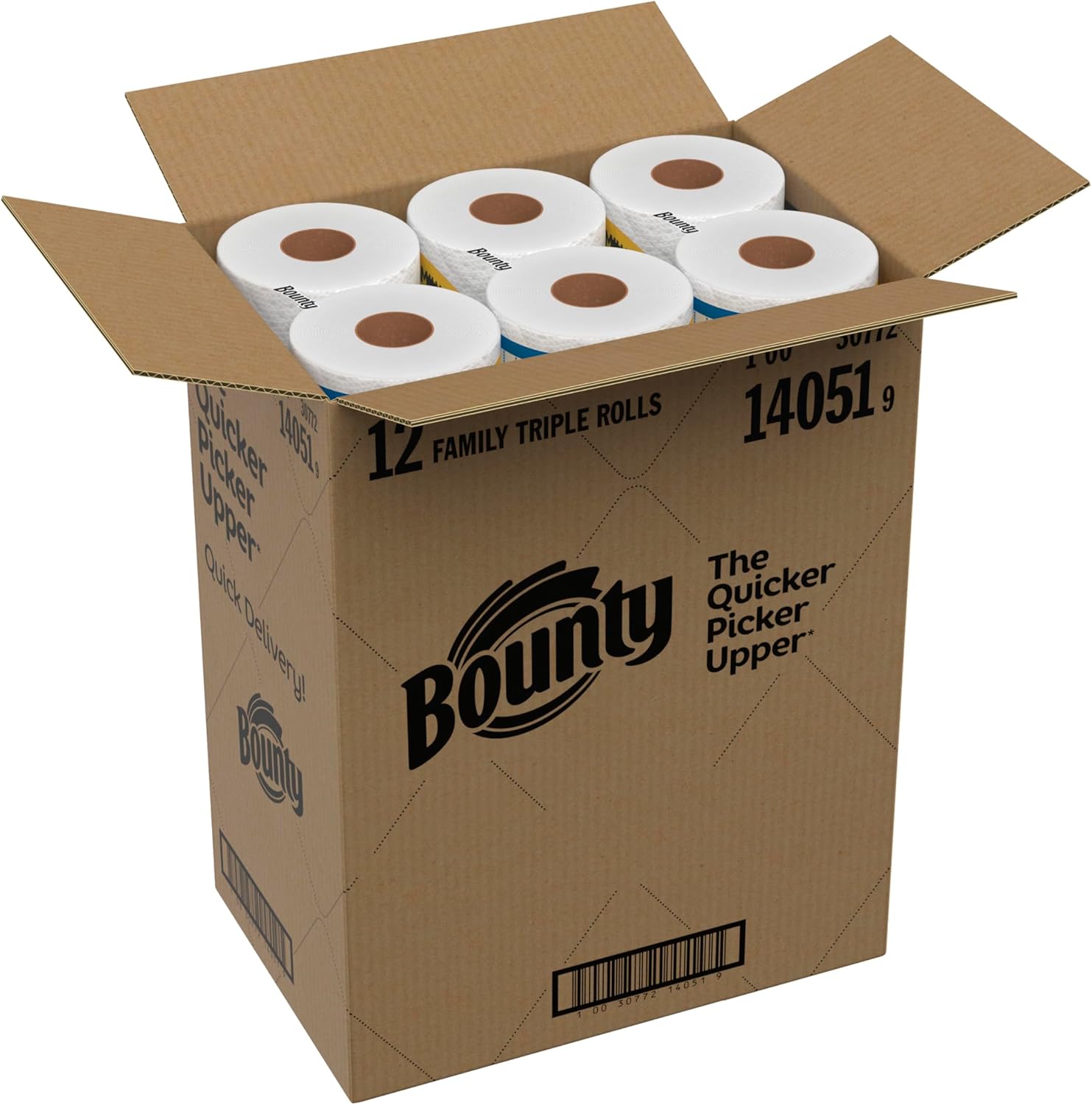 - Pack contains 12 Family Rolls of Bounty white Quick Size Paper Towels