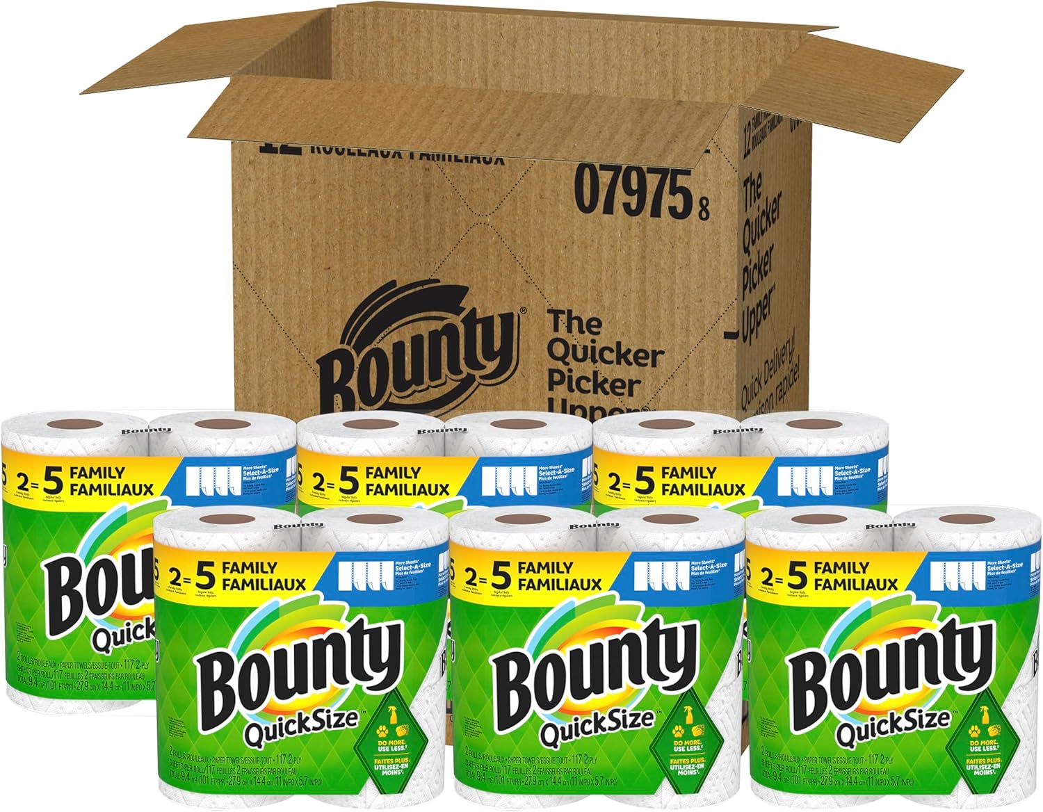 - Pack contains 8 Family Rolls of Bounty white Quick Size Paper Towels