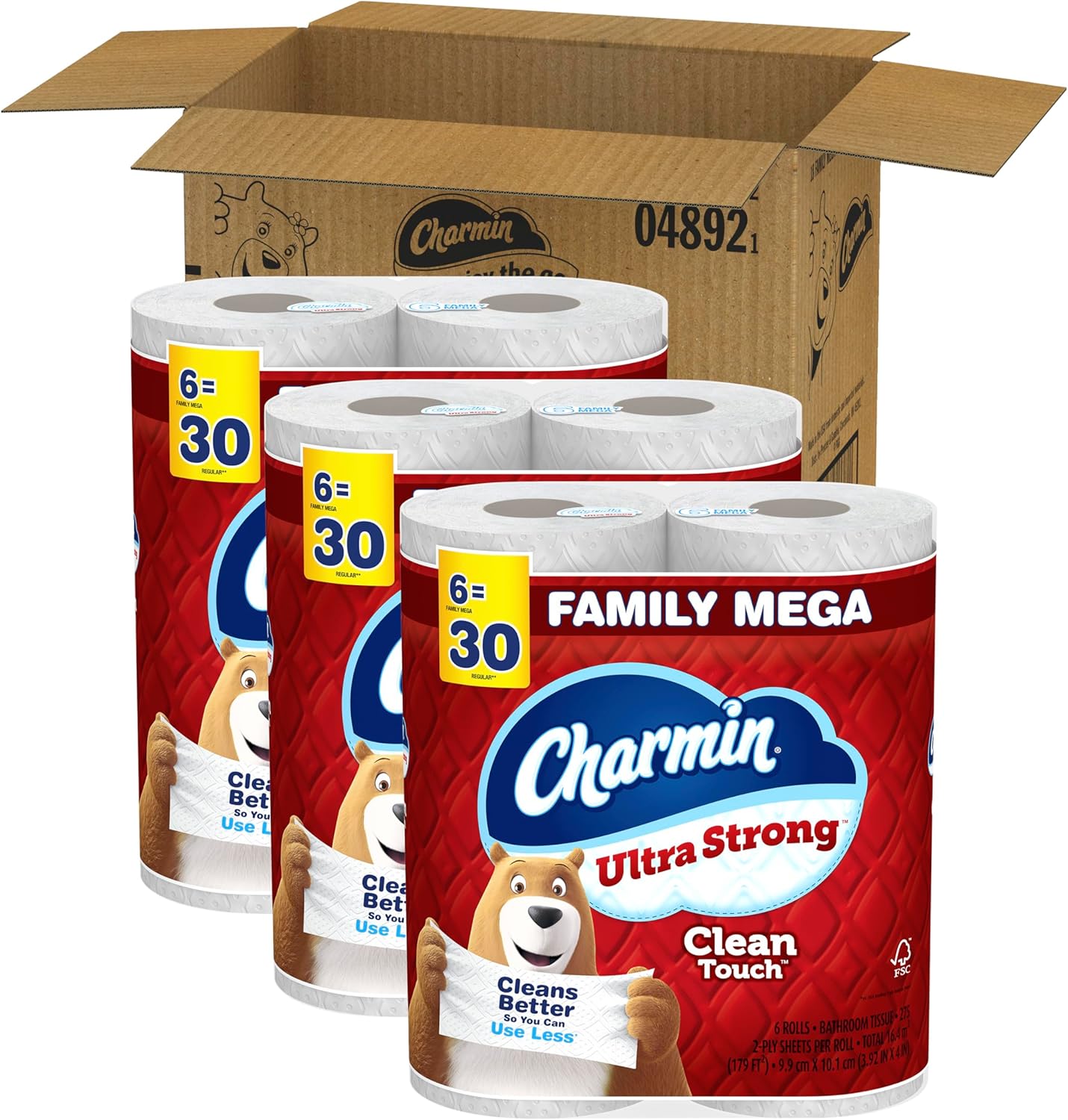 Charmin Ultra Strong Clean Touch Toilet Paper, 24 Family Mega Rolls = 120 Regular Rolls