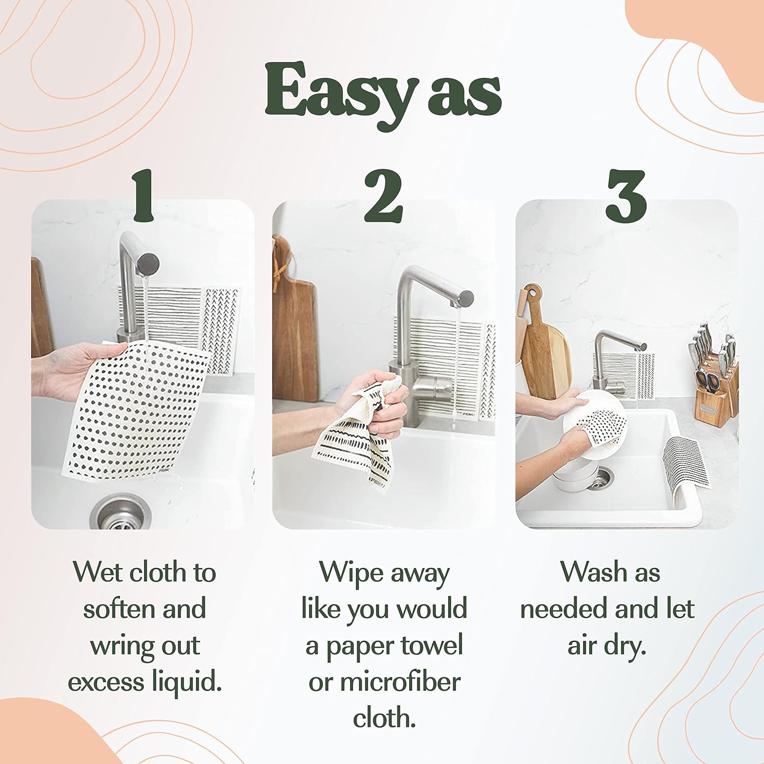 - ABSORBENT & MULTIPURPOSE — Clean up messes with ease using our highly absorbent Swedish dishcloths for kitchen. These versatile Swedish towels absorb up to 20x their weight, making them perfect for any mess.